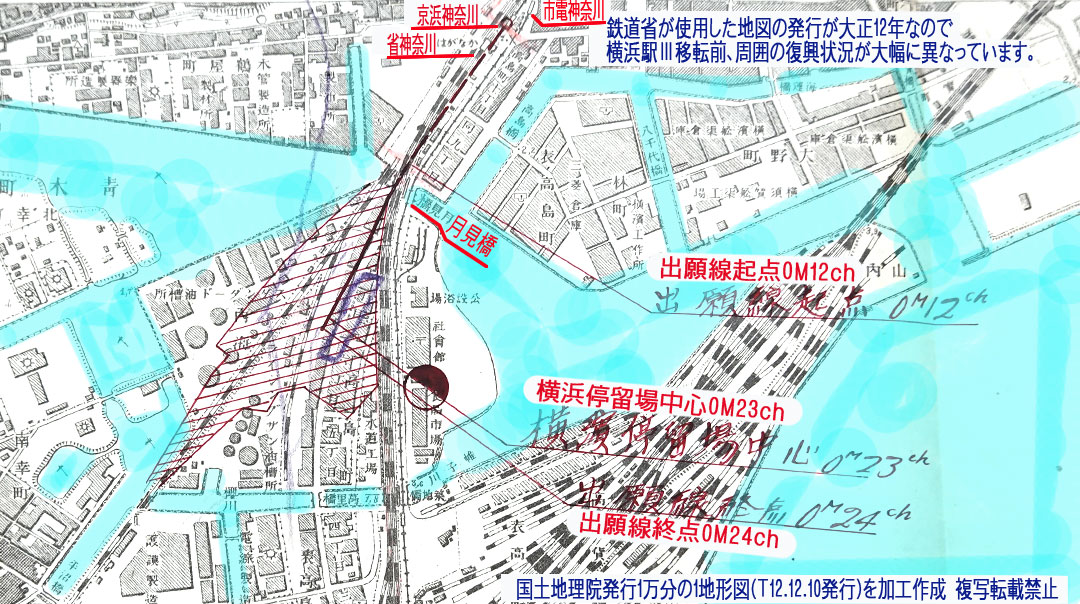 T12.09.01に関東大震災が発生し、横浜駅Ⅱが崩壊、横浜駅Ⅲ(現在地)へ移転が決った。→横浜駅移転の歴史