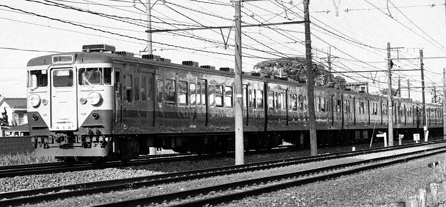 | ↑1977.05撮影 クモハ107 前面の方向板差しが中央1箇所になった | ||||||||||||||||||||||||||||||||