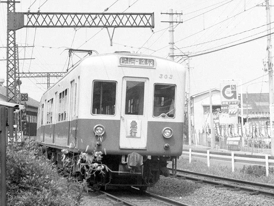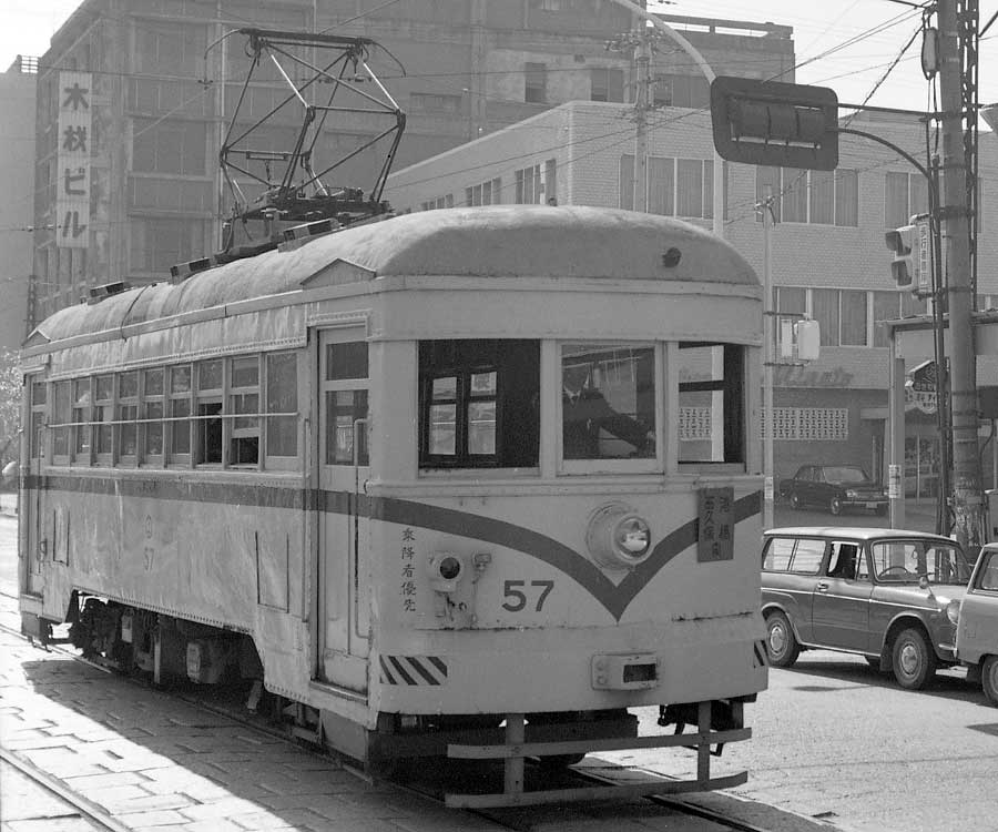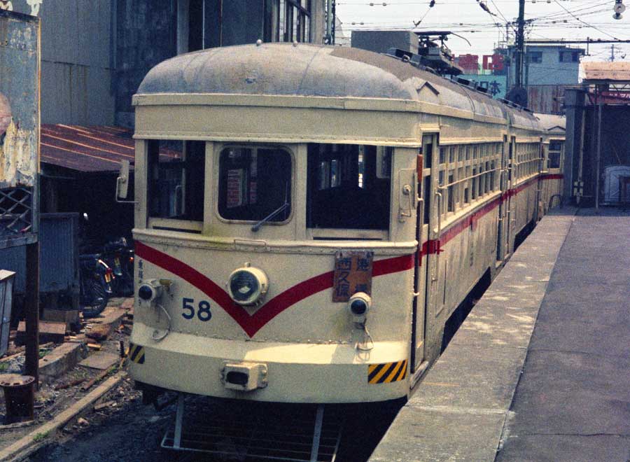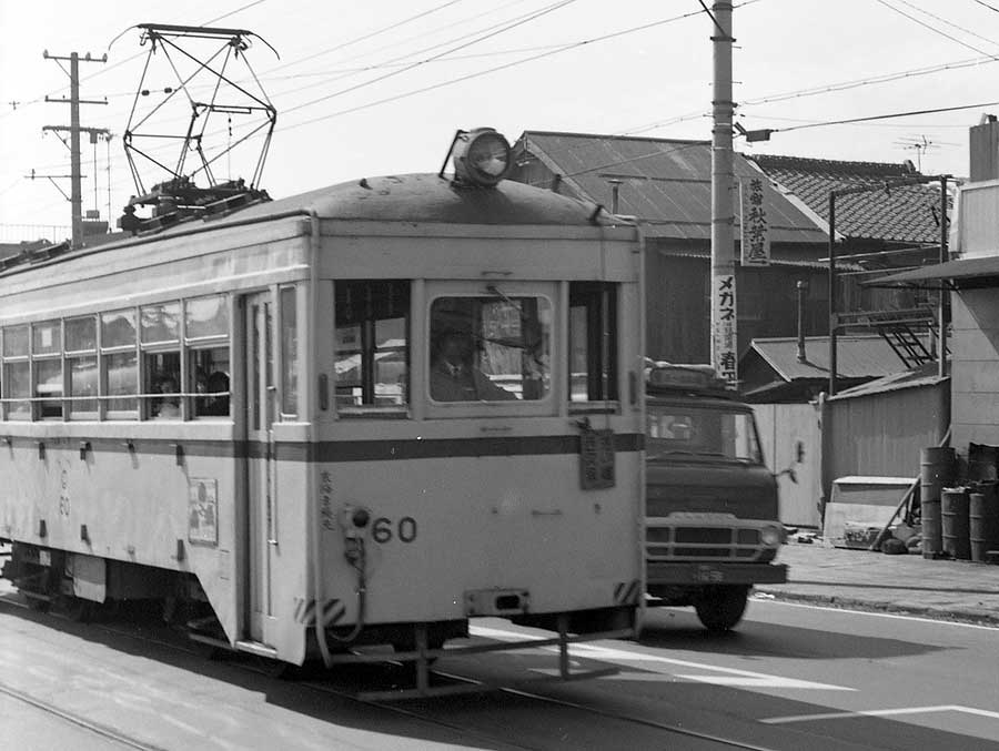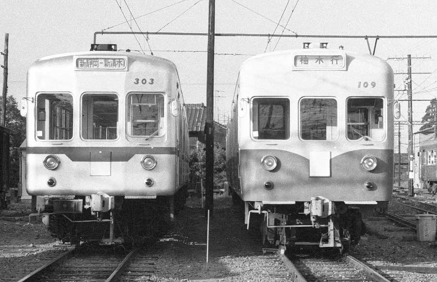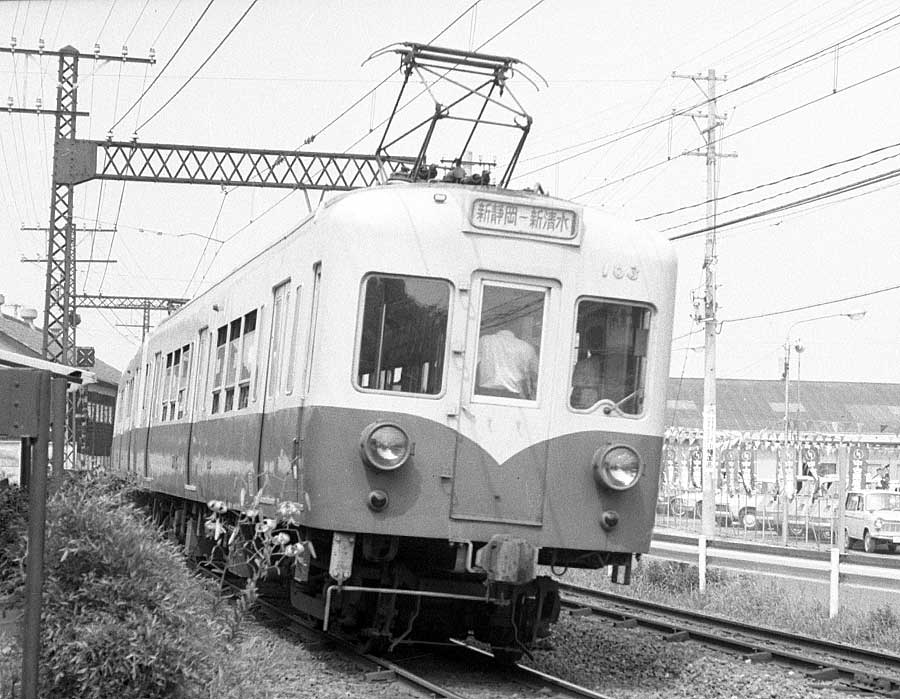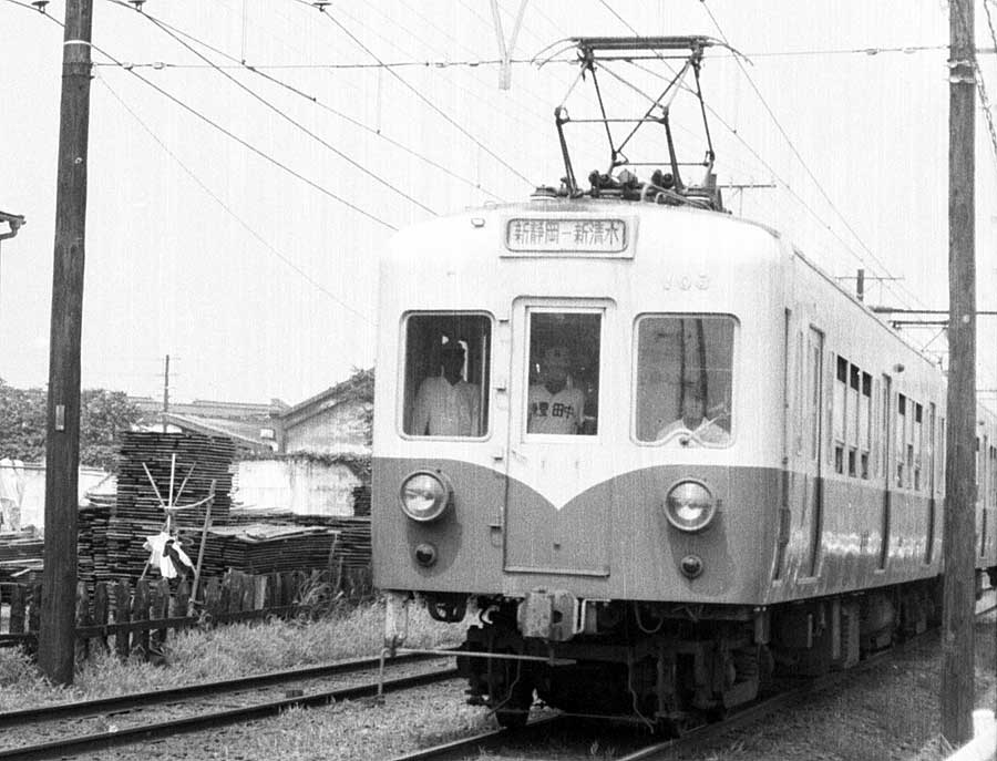 | ↑清水市内線 モ58+59の2両連結改造車 1970.07撮影 | ||||||||||||||||||||||||||||||||