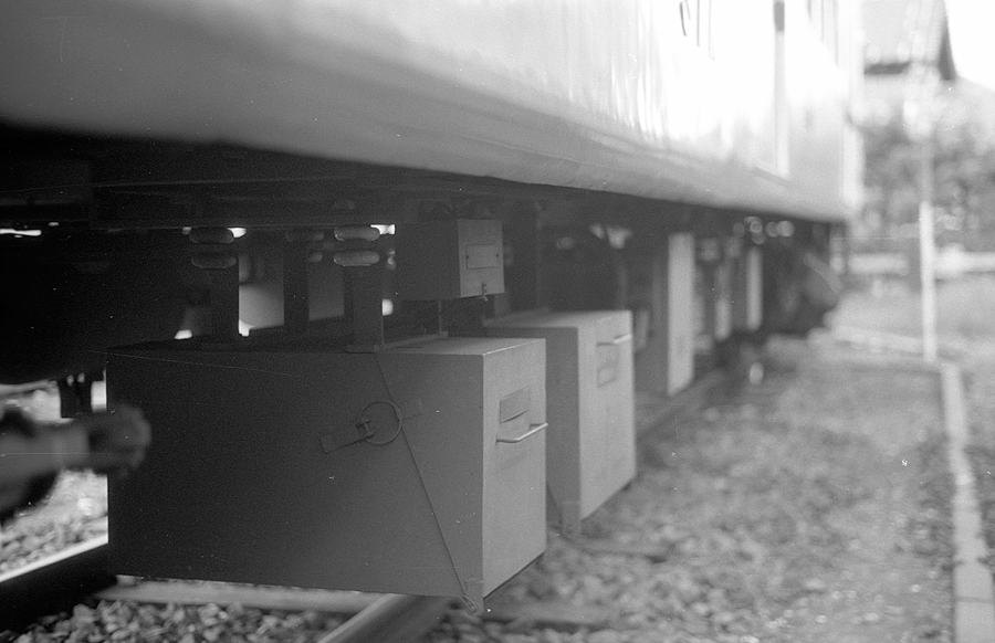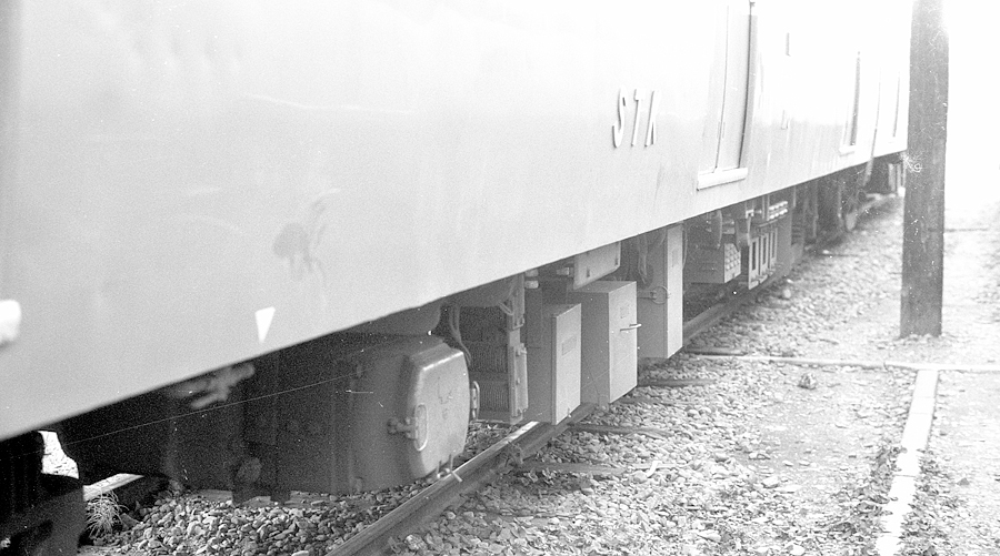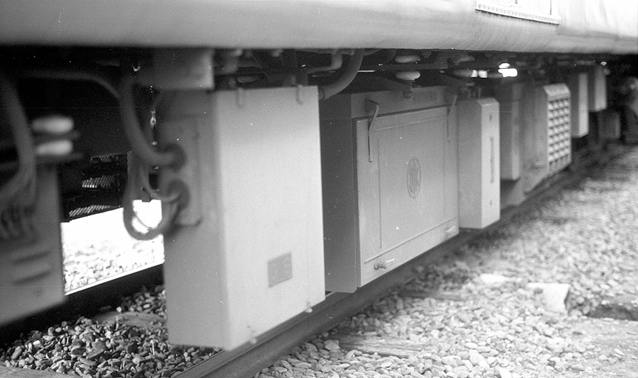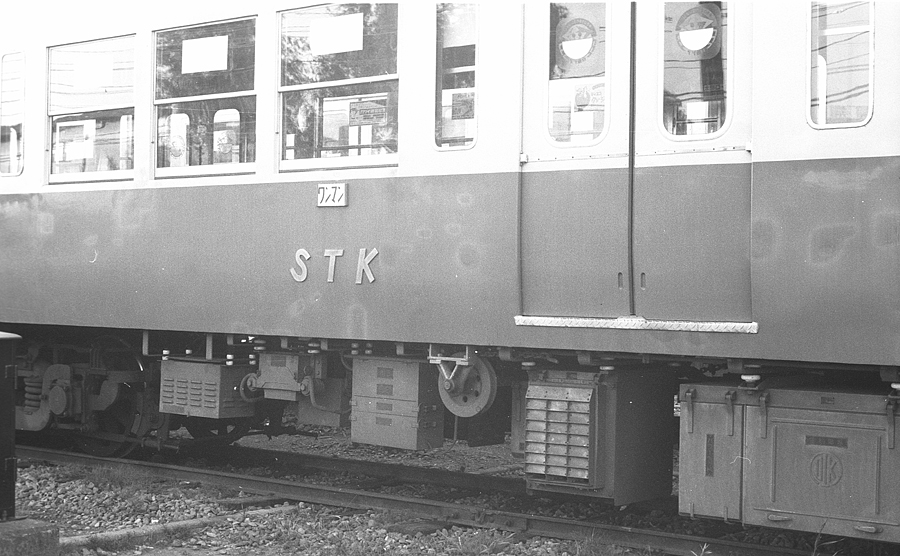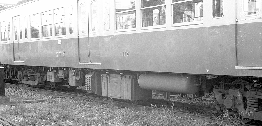 | ↑両運転台で登場した100形だが107以降2両固定で登場。109+110は連結面にパンタを搭載。1970.07撮影 床下写真に関してもただ貼り付です。順番や背景などを御考察の上ご覧願います |