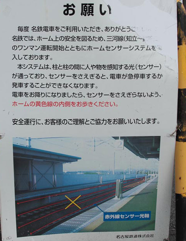 保護棒の理由はワンマン化の為のホームセンサー内蔵柱と車体の間隔が狭くなるため。