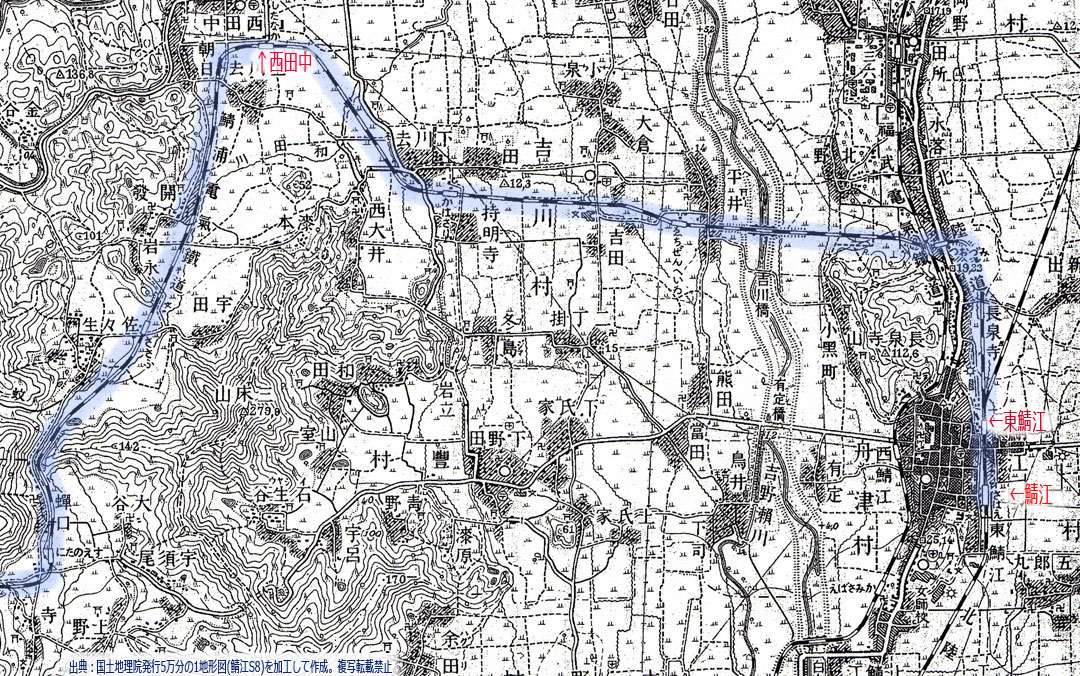(4)連絡線がS22に完成したので、水落駅は地図の上方に移転し、両線の水落駅は廃止された。