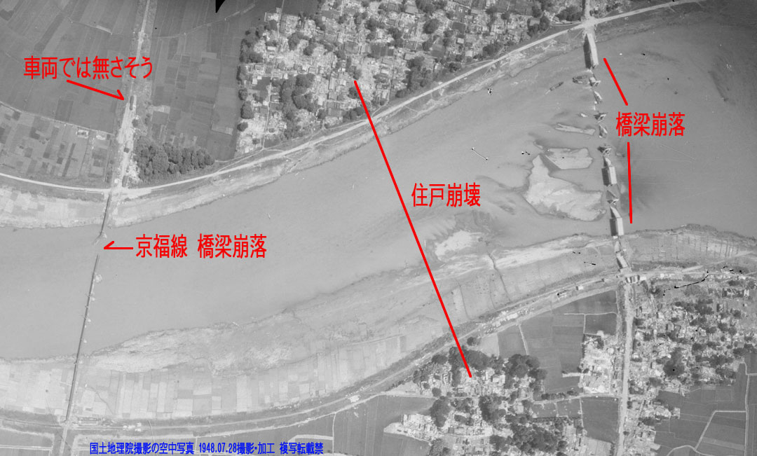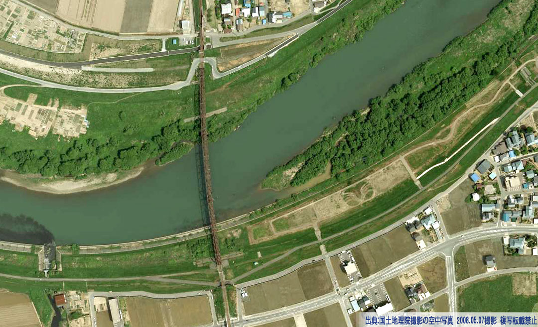 ↑旧橋梁の橋脚を避けて新設したためだろう。橋梁がくの字型