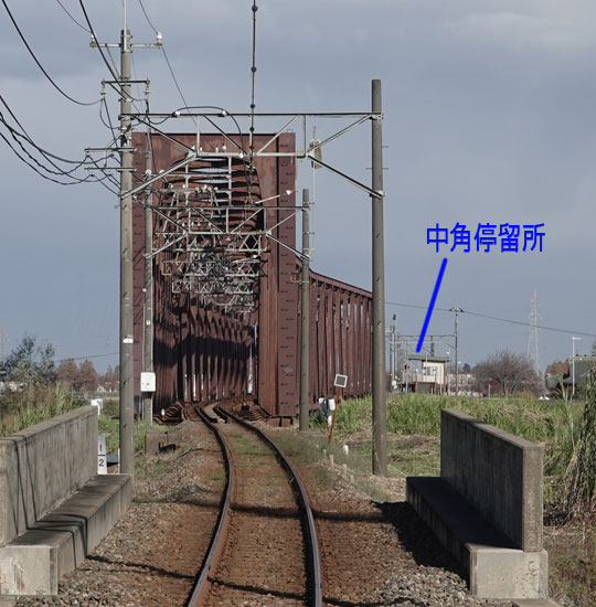 ↑ 中角停留所は築堤の上に設置され、駅への昇降階段が非バリアフリーかつ乗降客が少ないため、