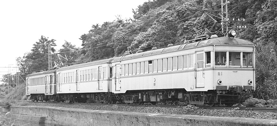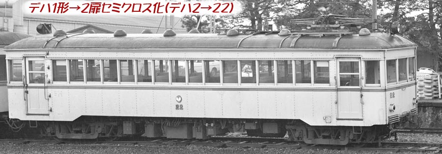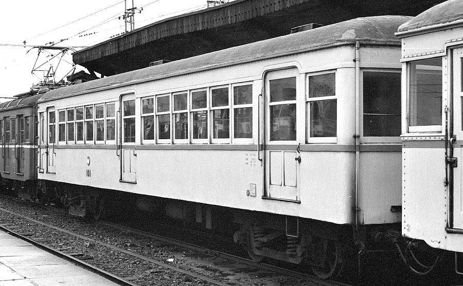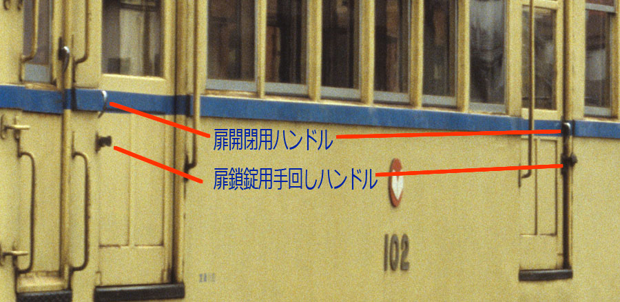 ↓ 3扉車だがドアは手動式 デハ20、デハニ50、クハ100が該当 |