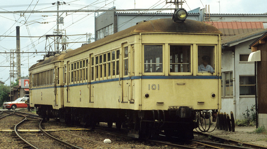 名鉄揖斐谷汲線は車掌が通常、外からドア鍵を掛けて回って発車合図していた。 |
