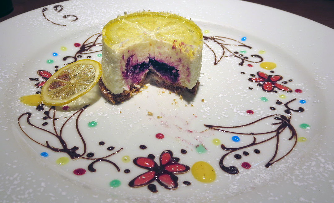 ■上から レモンのゼリー、ヨーグルトムース、ミックスベリージャム、台はレモンクッキーの豪華仕様