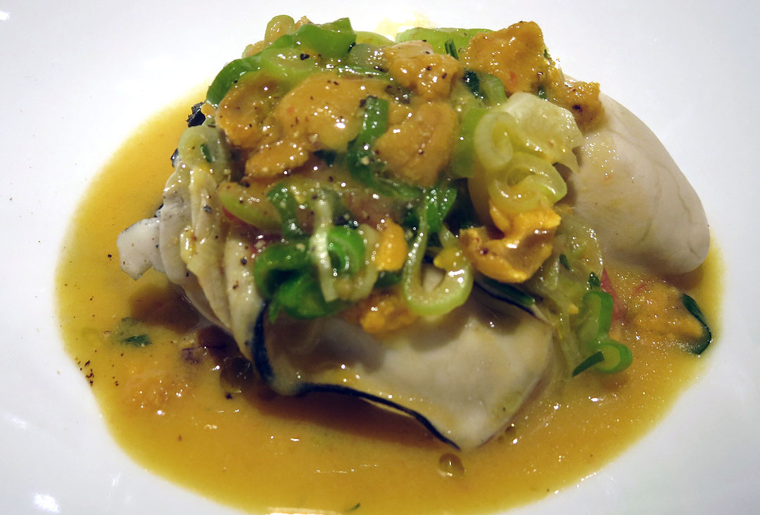 ↑大粒2年物牡蠣と季節野菜、からすみ掛け(いい加減忘れているスイマセン)