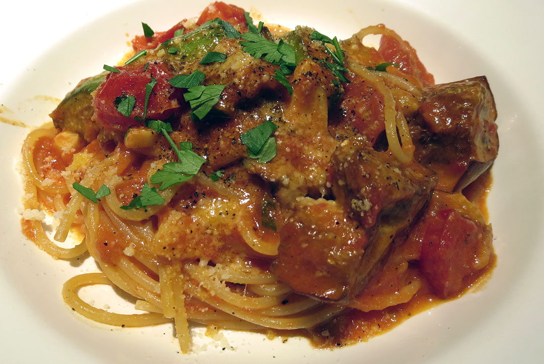 ↑シェフの鎌倉の2種の茄子スパゲティ