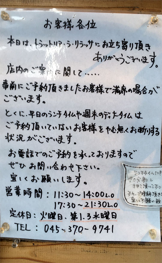 「お昼」のランチは満席状態で事前予約必須 になっているとのこと。