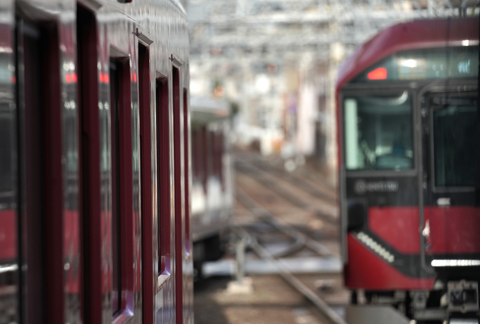 | ↑奈良行快速急行と京都発鳥羽行特急のほぼ同時進入 |
