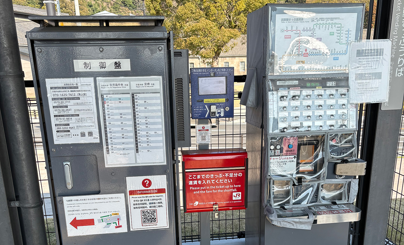 潮風と強風対策で券売機には細かいビニールカバーが |