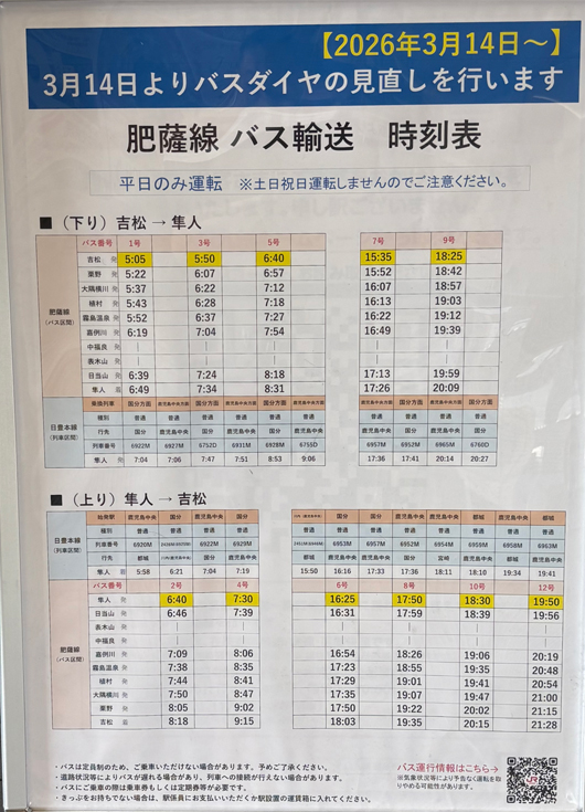 JR九州 吉松駅、隼人駅 2026.03