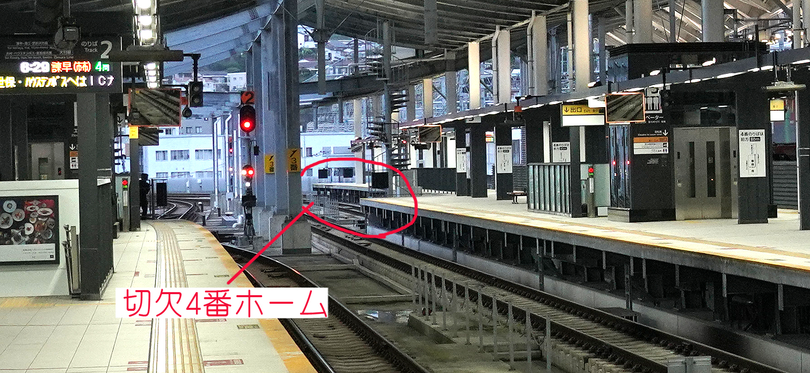 切り欠きホームは本来、満線予備とかに使用するべきであって、1時間数本発着しかなくて、2面4線の巨大ホームが空っぽなら使用するべきでないのでは??