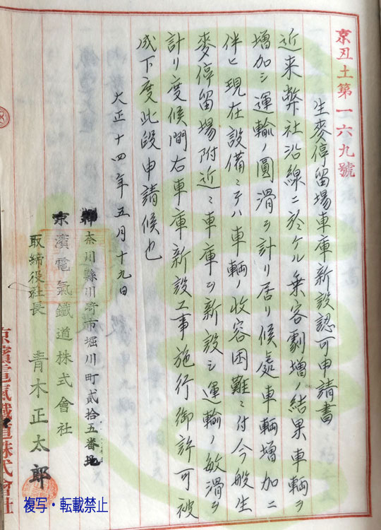 使用期間は2年で認可されている。関係箇所の最終認可は大正5年1月と推察される。