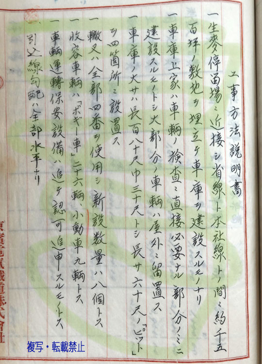 工事方法説明書のところに「小動車9両とす」の箇所は赤線がひかれており、許認可庁の担当者はさすがに此の書き方にはまいったのかも。