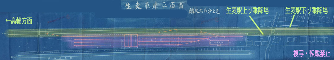 生麦駅は上図の右側にあり踏切を挟んで相対式だった |