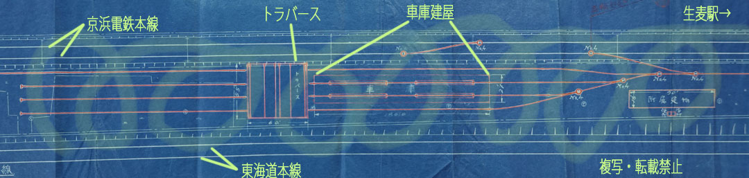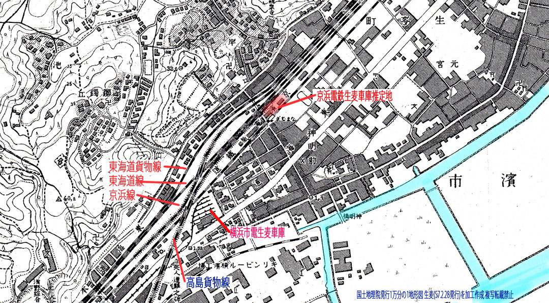 このS7発行では生麦車庫の車庫建屋らしきもののみで線路は完全無視されている。
